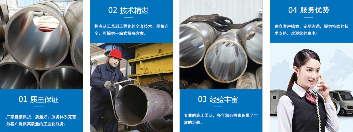 目前公司品種規(guī)格為:內(nèi)徑直徑30mm—300mm,壁厚為2mm—40mm。技術(shù)條件為:內(nèi)孔精度H5—H10,內(nèi)孔粗糙度Ra≤0.63um,直線度≤0.3mm/m。鋼號(hào)是20#—45#、16Mn、27SiMn及部分低合金鋼,標(biāo)準(zhǔn)GB8713-88。規(guī)格為40-300*2-40MM,長(zhǎng)度為2-12M的各種類型油缸管,年產(chǎn)銷售能力3萬(wàn)噸。公司設(shè)備先進(jìn),工藝優(yōu)化,檢測(cè)手段完善。